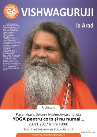 Informație: Prelegerea Sfinției sale se va desfășura în primăvara anului 2018. Seminarul Internațional Yoga în luna noiembrie va fi condus de Mahamandaleshwar Swami Vivek Puri.