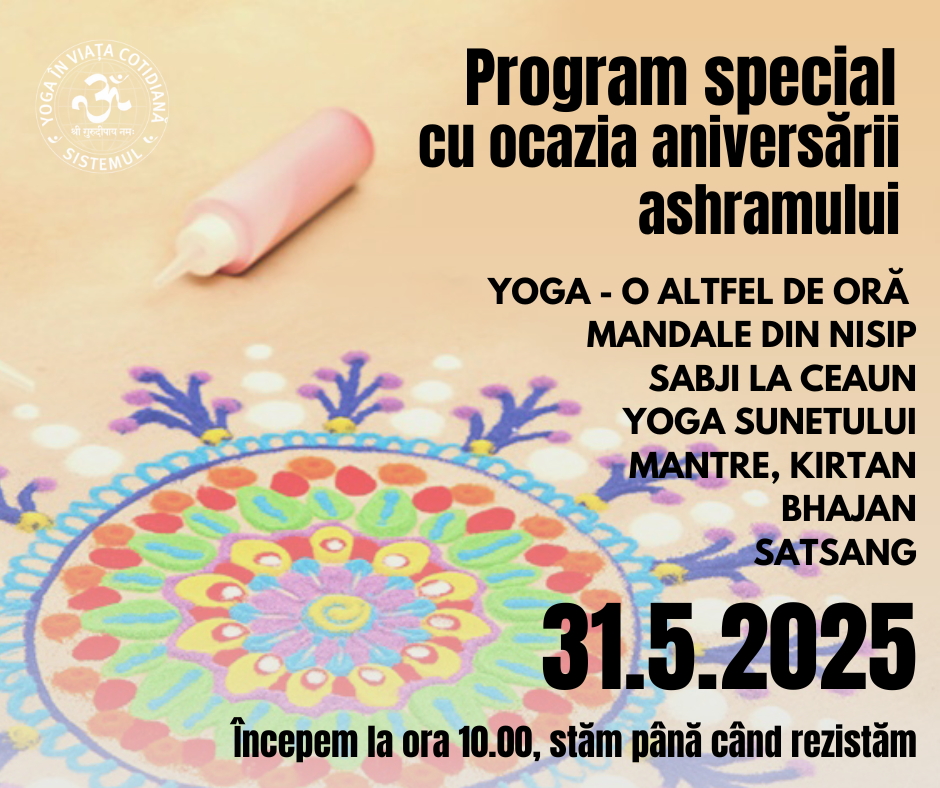 Vă invităm cu mult drag la programul festiv cu ocazia aniversării ashramului şi vizitei lui Sri Vishwaguruji în România.