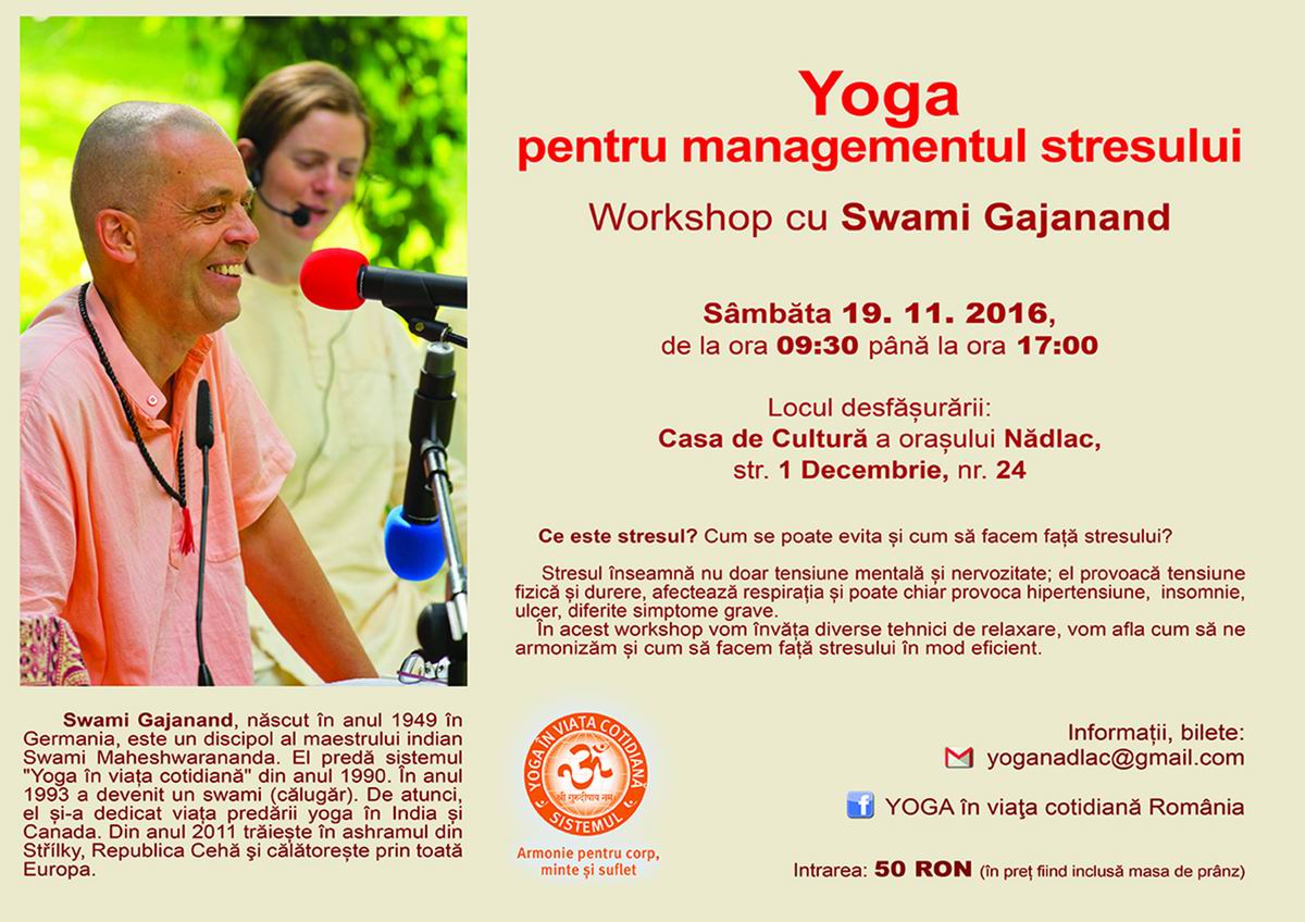 19.11.2016 Yoga pentru managementul stresului - Workshop cu Swami Gajanand
