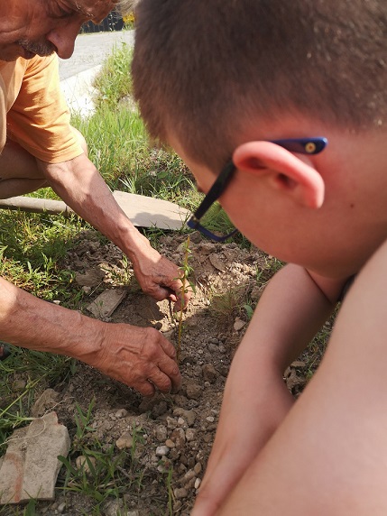 Copii din cursul de yoga au plantat copacii prieteniei în jurul ashramului.