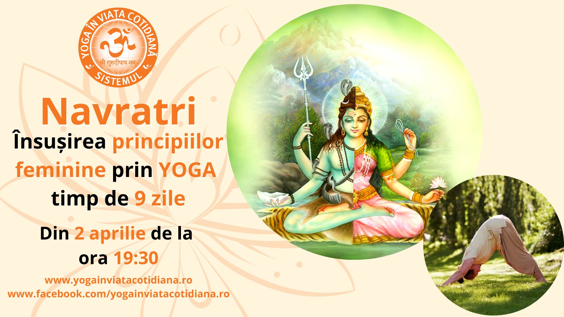 Echilibrarea energiilor este foarte importantă în practica yoga. Pe parcursul celor 9 zile festive de Navaratri, din 02 aprilie, vă oferim 9 ședințe de yoga online unde vom practica diferite exerciții pentru înțelegerea, adoptarea și îmbrățișarea energiei feminine.