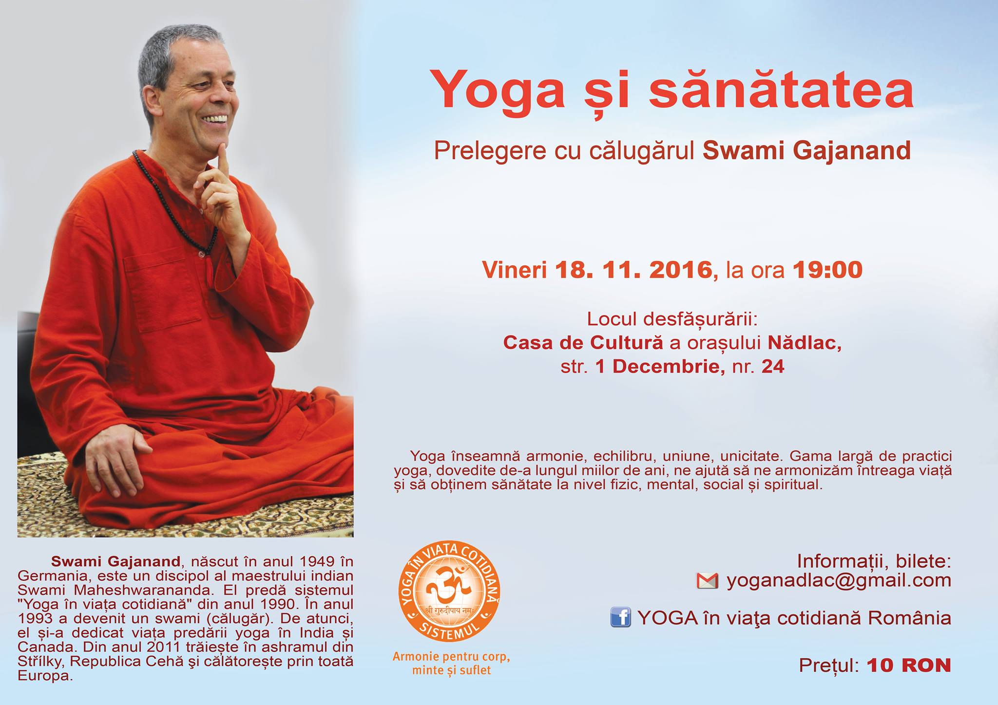 18.11.2016 YOGA și Sănătatea - prelegere cu Swami Gajanand