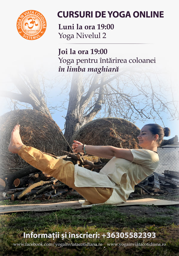 Pentru a aprofunda experiența exercițiilor fizice și a meditației conform sistemului Yoga în viața cotidiană, vom continua cu seria orelor online pe platforma Zoom. Vom începe cu luni 6.10.