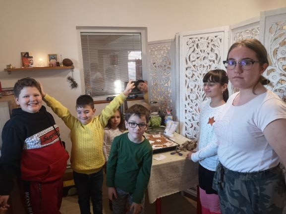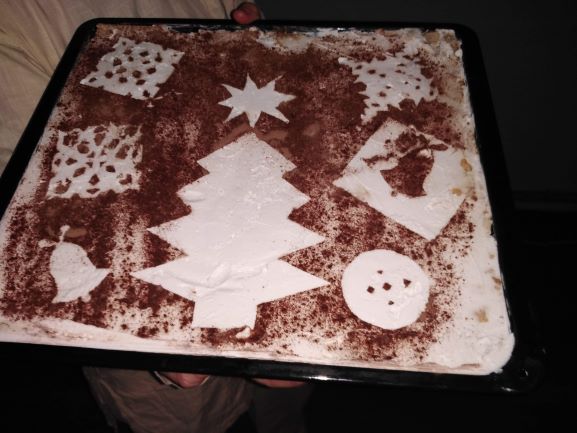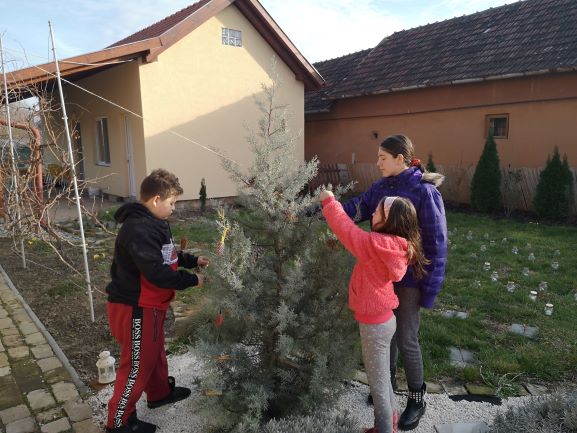 După aprinderea lumănărilor pe pomul de crăciun au servit cina gustoasă.
